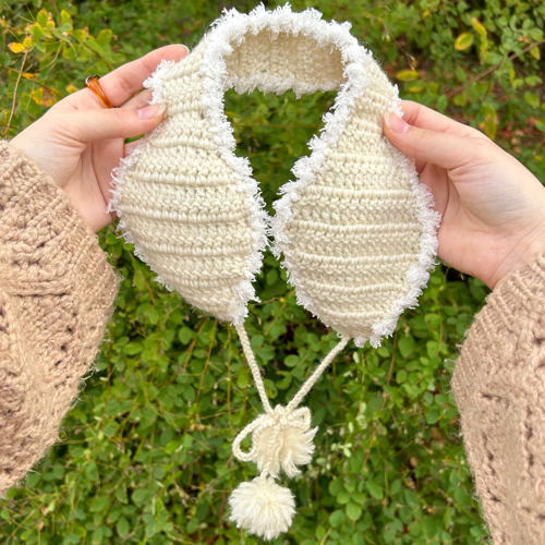 かぎ針を使用して、手編みで丁寧に編んでいますが多少のゆがみ、編み目の不揃いがございます。